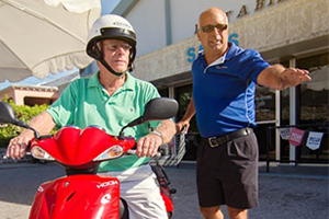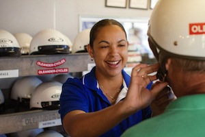 Wear the helmet provided and keep it securely fastened when riding. It's smart and it's the law.